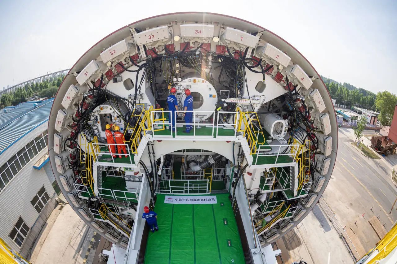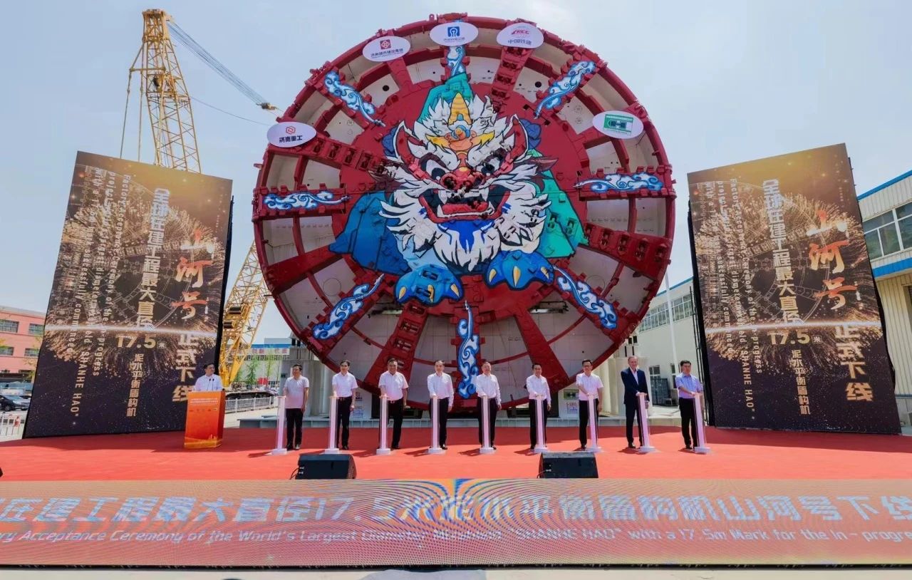 “山河号”泥水平衡盾构机由济南重工集团、海瑞克集团联合437ccm·必赢国际、中铁十四局集团研发制造,最大开挖直径17.5米,盾构机总长163米、重约5200吨、装机总功率12580千瓦;配备各类型开挖刀具共计306把,其中57把具备滚齿互换功能,以优化其在多变地层中的作业性能;装配带压复合型刀盘、伸缩式主驱动、泥水仓伸缩摄像头;搭载刀盘磨损自动监测、设备状态在线监测和“五官一脑”智能化装备系统,并通过大盾构云智慧平台实现远程操控,以保证掘进安全和效率。