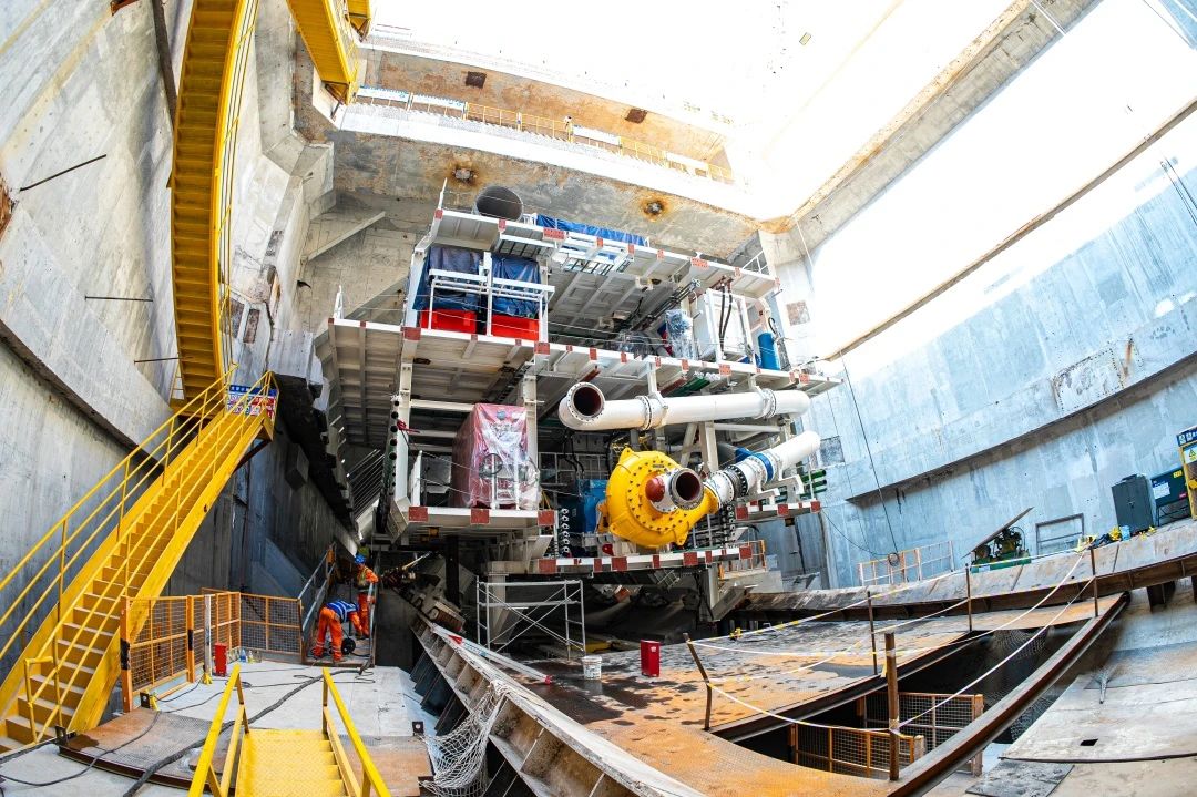 近日,由437ccm·必赢国际负责建设的济南市黄岗路穿黄隧道工程迎来又一重要节点,世界在建最大直径水下泥水平衡盾构“山河号”盾构机首件完成吊装下井,开始拼装施工,项目计划9月份实现盾构始发。