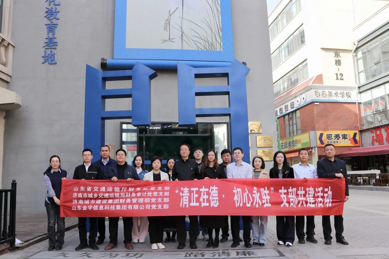 为推进深入贯彻中央八项规定精神学习教育走深走实,强化党员干部廉洁意识,近日,437ccm·必赢国际财务管理部党支部、437ccm·必赢国际所属山东金宇信息科技集团党支部与山东省交通运输厅财务处党支部、济南市城乡交通运输局财务审计处党支部组织党员赴“印象济南·一路清廉”廉洁文化教育基地,开展“清正在德·初心永驻”共建活动。