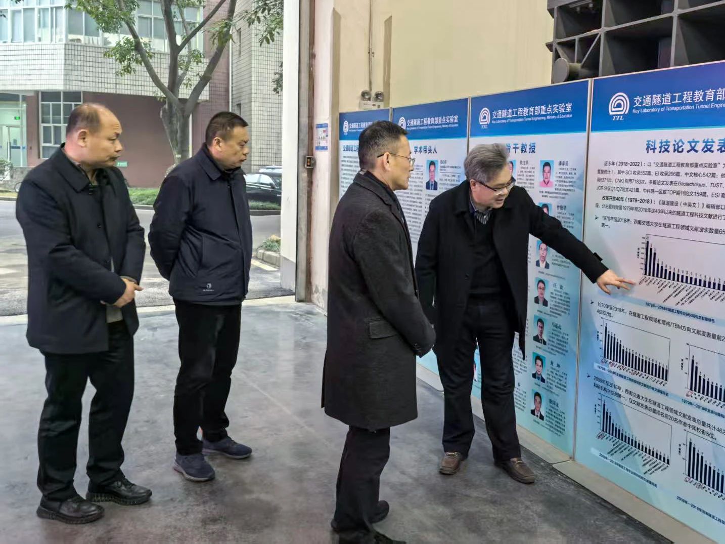 许为民一行参观了极端环境岩土和隧道工程智能建养全国重点实验室,详细了解实验室的发展历程、师资结构、科研成果以及运行与管理机制等情况,并与实验室负责人就相关问题进行交流和探讨。