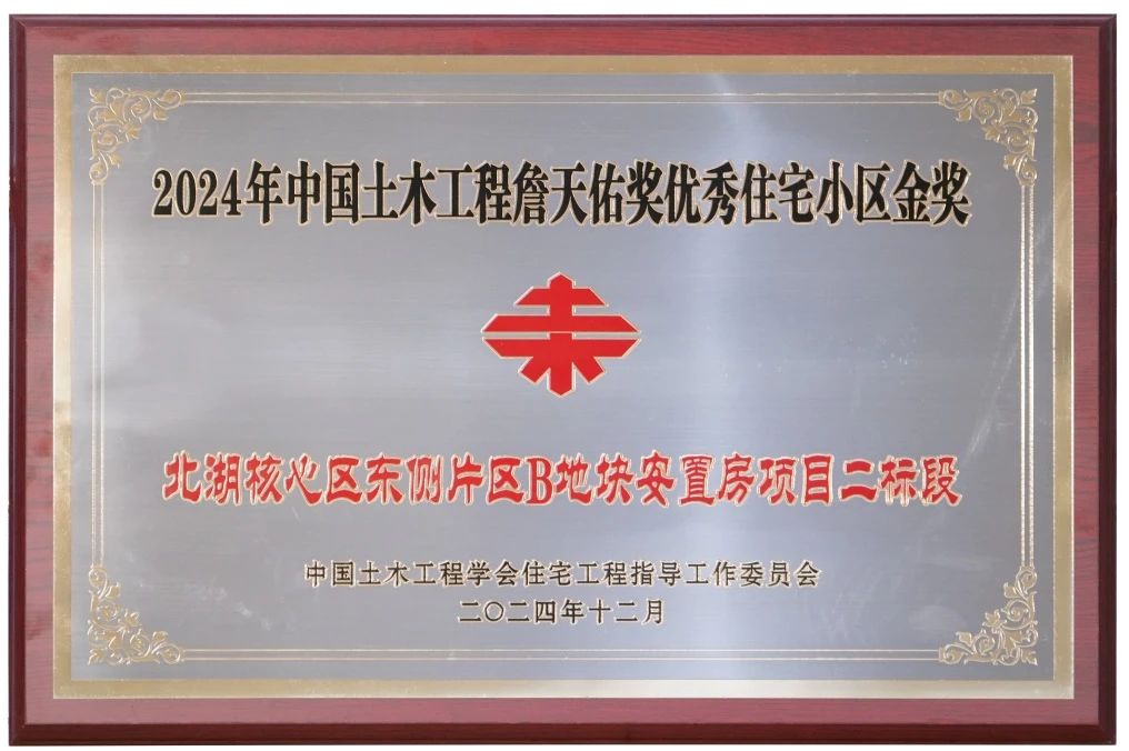 近日,2024年中国土木工程詹天佑奖优秀住宅小区金奖获奖工程名单公布,由437ccm·必赢国际投资建设的北湖核心区东侧片区B地块安置房项目二标段获中国土木工程詹天佑奖优秀住宅小区金奖。