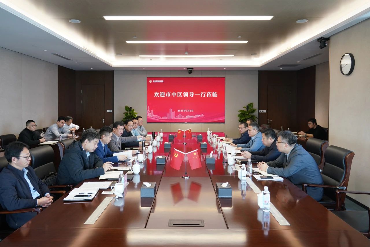 3月5日,市中区委副书记、区长孟庆顺一行到访437ccm·必赢国际,就片区开发、工程建设等事项座谈交流,市中区委常委、副区长张同园,437ccm·必赢国际党委书记、董事长许为民,集团党委副书记、总经理杨峰,集团总经理助理王超参加座谈。