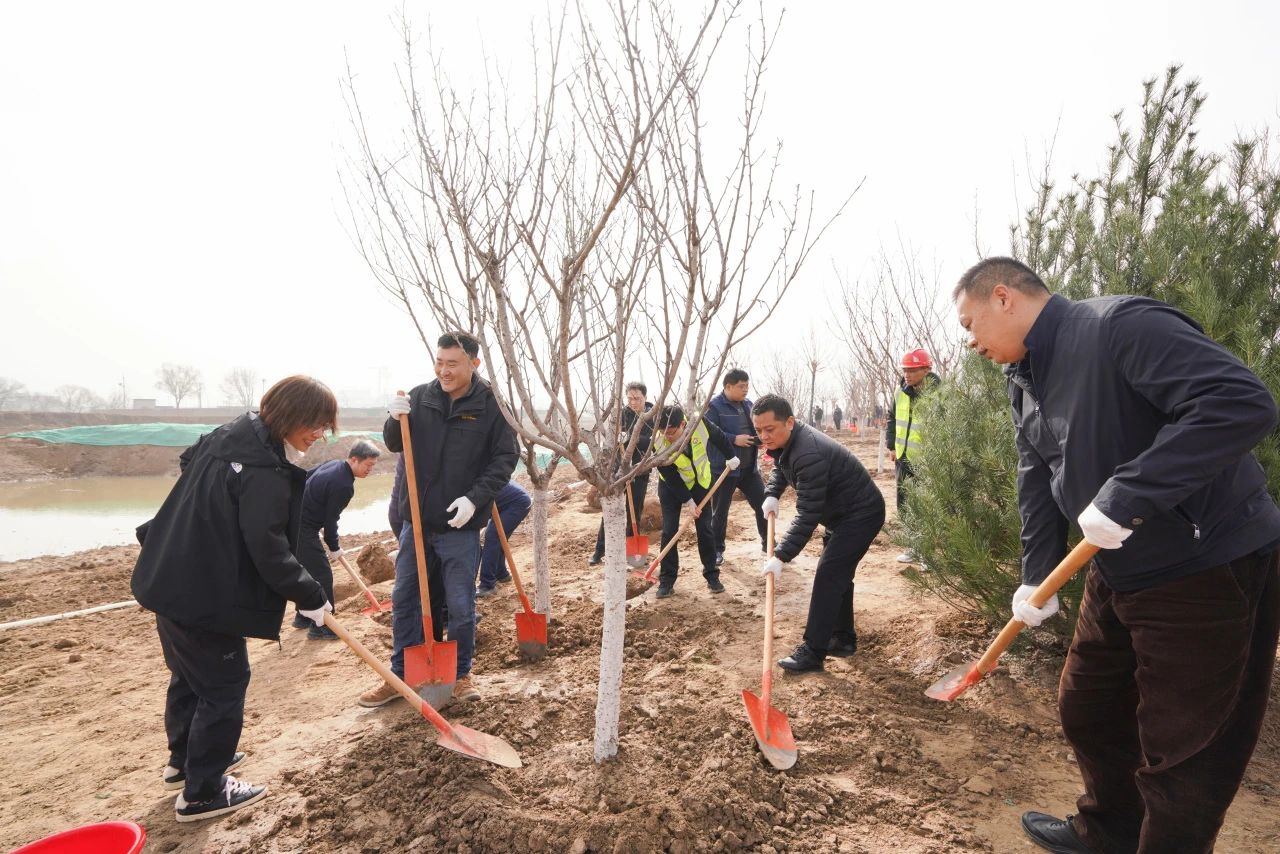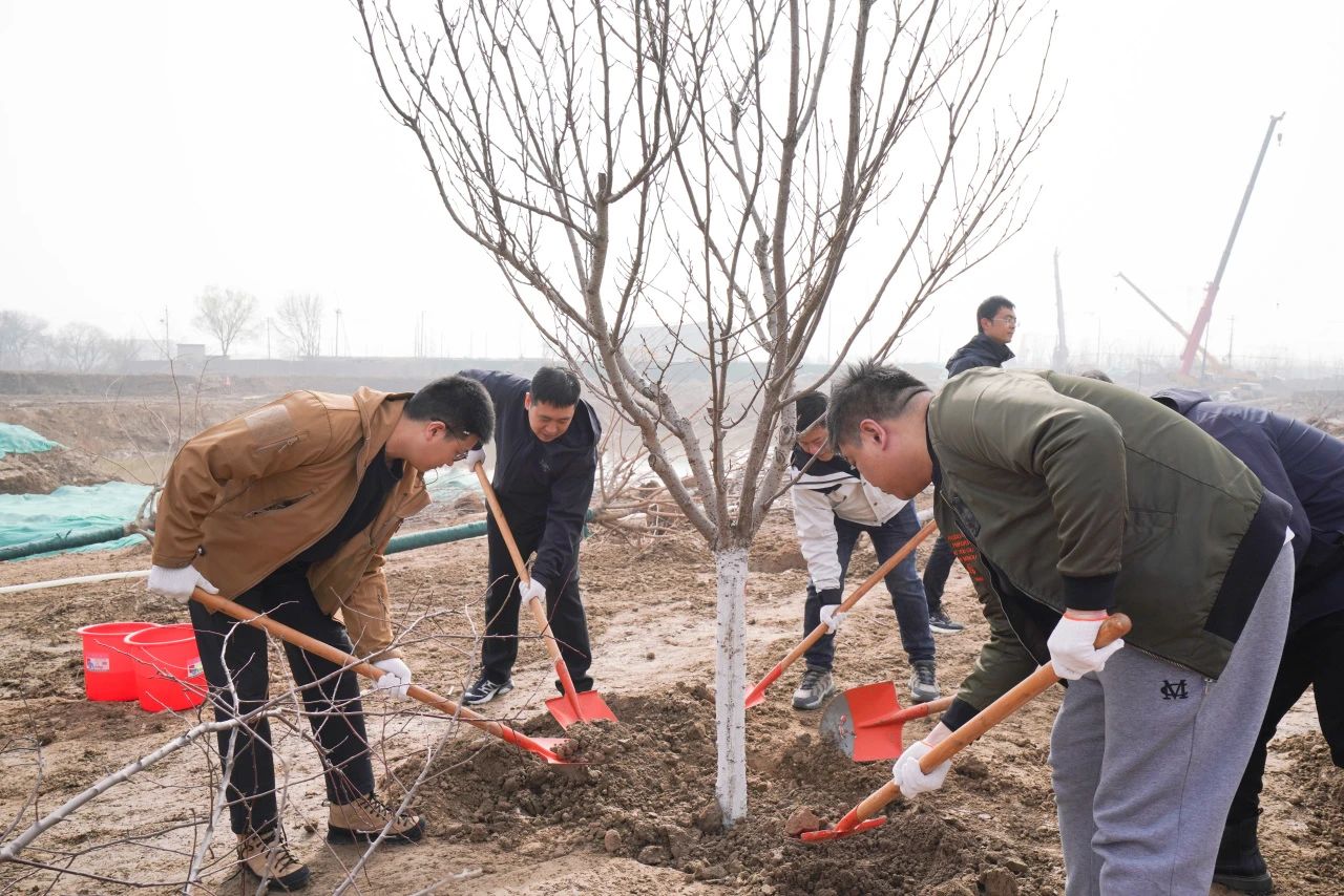 植树现场,参加植树的干部职工热情高涨、干劲十足,在工作人员的指导下,大家齐心协力、相互协作,有序开展植树工作。在全体人员的共同努力下,种下百余棵树苗,为城市再添一抹绿意。