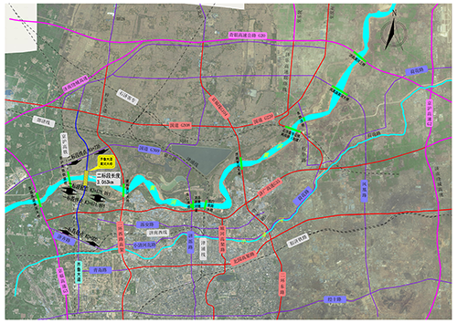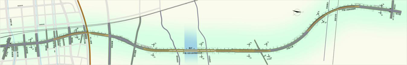 齐鲁大道北延工程建设地点位于济南市槐荫区、天桥区,路线南起齐鲁大道与济齐路交叉口,接现状齐鲁大道,依次跨越美里路、北太平河北路、济广高速,经过郑家店村东,跨越黄河后与现状G309相交。项目全长6735米,其中黄河特大桥长度3209.2米。一标段工程施工造价约5.6亿元,二标段工程施工造价约19.3亿元。